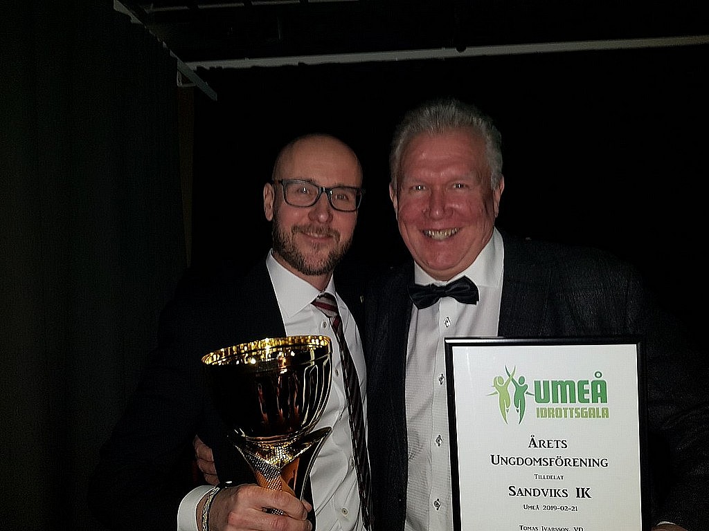 Vi kan med stor glädje och stolthet meddela att Sandviks IK fått motta priset som Årets Ungdomsförening i Umeå kommun 2018. Priset delades ut under torsdagens Idrottsgala på Umeå folkets hus och mottogs av föreningens representanter Erik Lindström och Anders Hägglund.